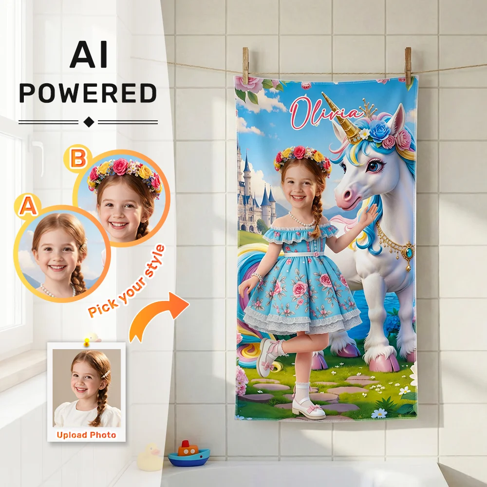 Custom Bath Towel AI Powered Floral Princess Unicorn Castle Scenic Children's Day Gift For Girl