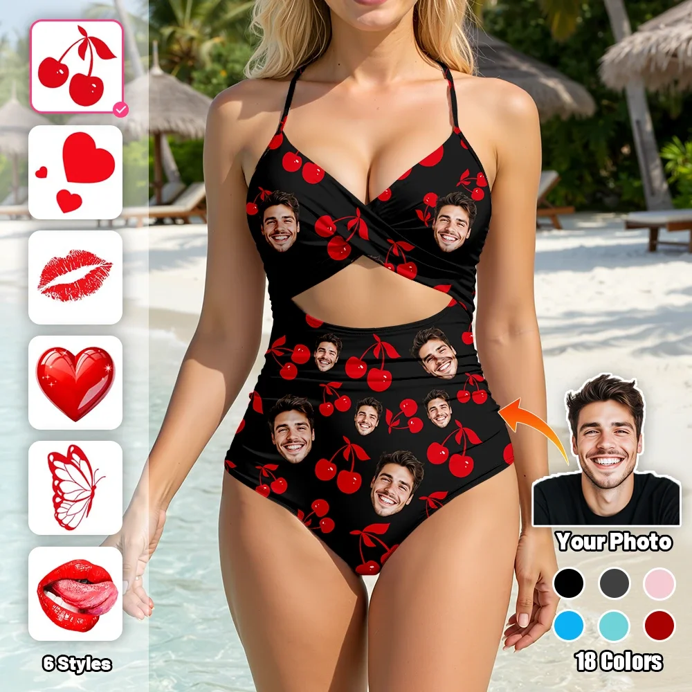Custom Crisscross Tie One-Piece Swimsuit Red Cherry Pattern Summer Sale Gift For HerCustom Crisscross Tie One-Piece Swimsuit Red Cherry Pattern Summer Sale Gift For Her