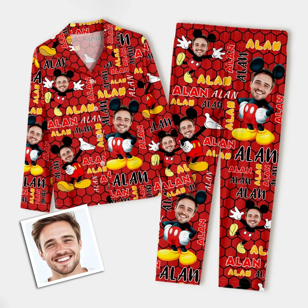 Custom Long Sleeve Pyjama With Your Face Mickey Minnie Mouse Pattern Couple Valentine's Day Gift For HimCustom Long Sleeve Pyjama With Your Face Mickey Minnie Mouse Pattern Couple Valentine's Day Gift For Him