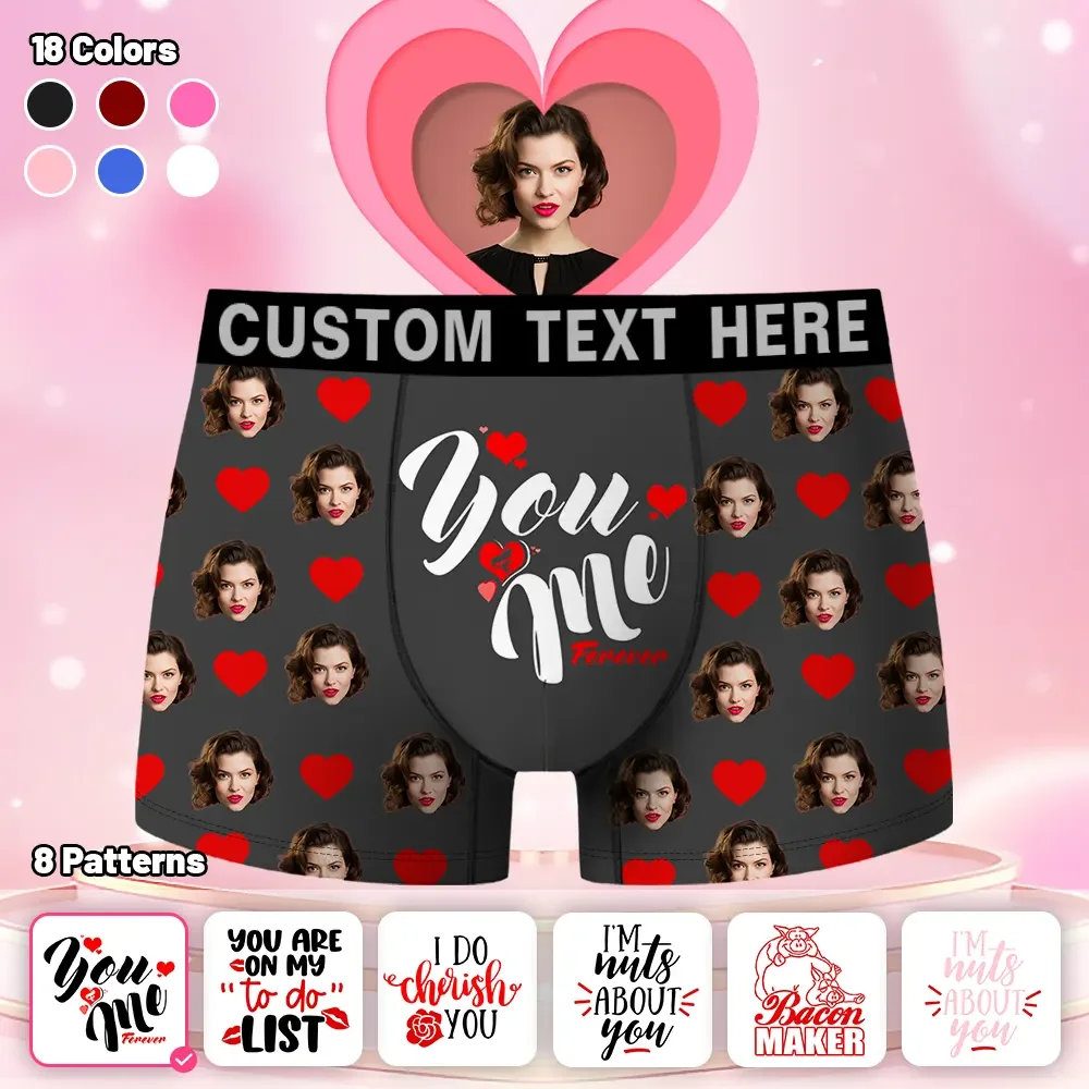 On special occasions like Valentine's Day, an anniversary, or a birthday, you hand him a box, and when he opens it, he'll be met with a look of surprise (and maybe even laughter) at these one-of-a-kind underwear. Brightly printed—his (or your) face, hearts, and custom text. Imagine him wearing them on lazy Sundays, or as a hidden "I love you" underneath his work clothes.