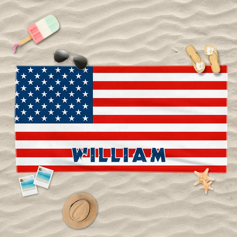 Custom Photo Beach Towel, Quick Dry Bath Towel ,American Flag Independence Day Swimming Towel