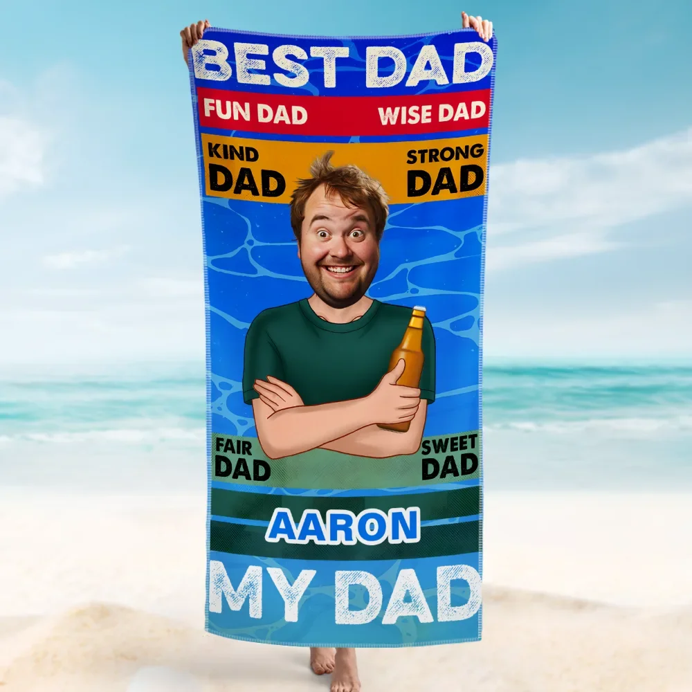 Father's Day Gifts Custom Photo Beach Towel, Quick Dry Bath Towel, Best Dad My Dad Swimming Towel