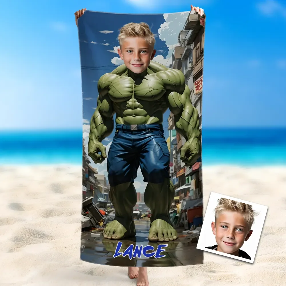 Custom Photo Beach Towel, Quick Dry Bath Towel, Hulk Swimming Towel