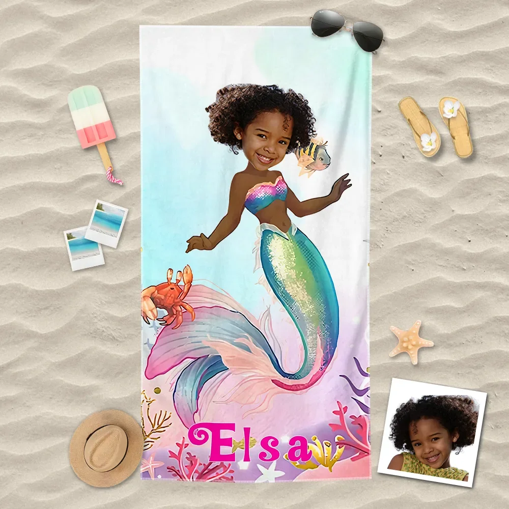Custom Photo Beach Towel, Quick Dry Bath Towel, Little Mermaid Princess Swimming Towel