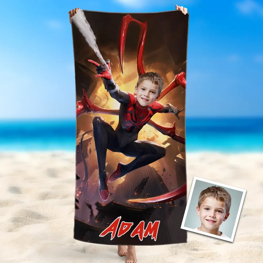 Custom Photo Beach Towel, Quick Dry Bath Towel,Spider-Man Swimming Towel