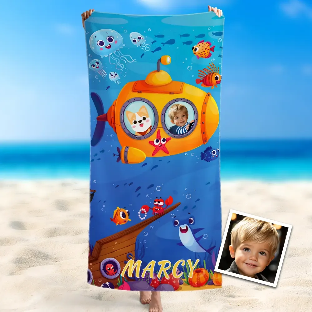 Custom Photo Beach Towel, Quick Dry Bath Towel, The Underwater World Swimming Towel