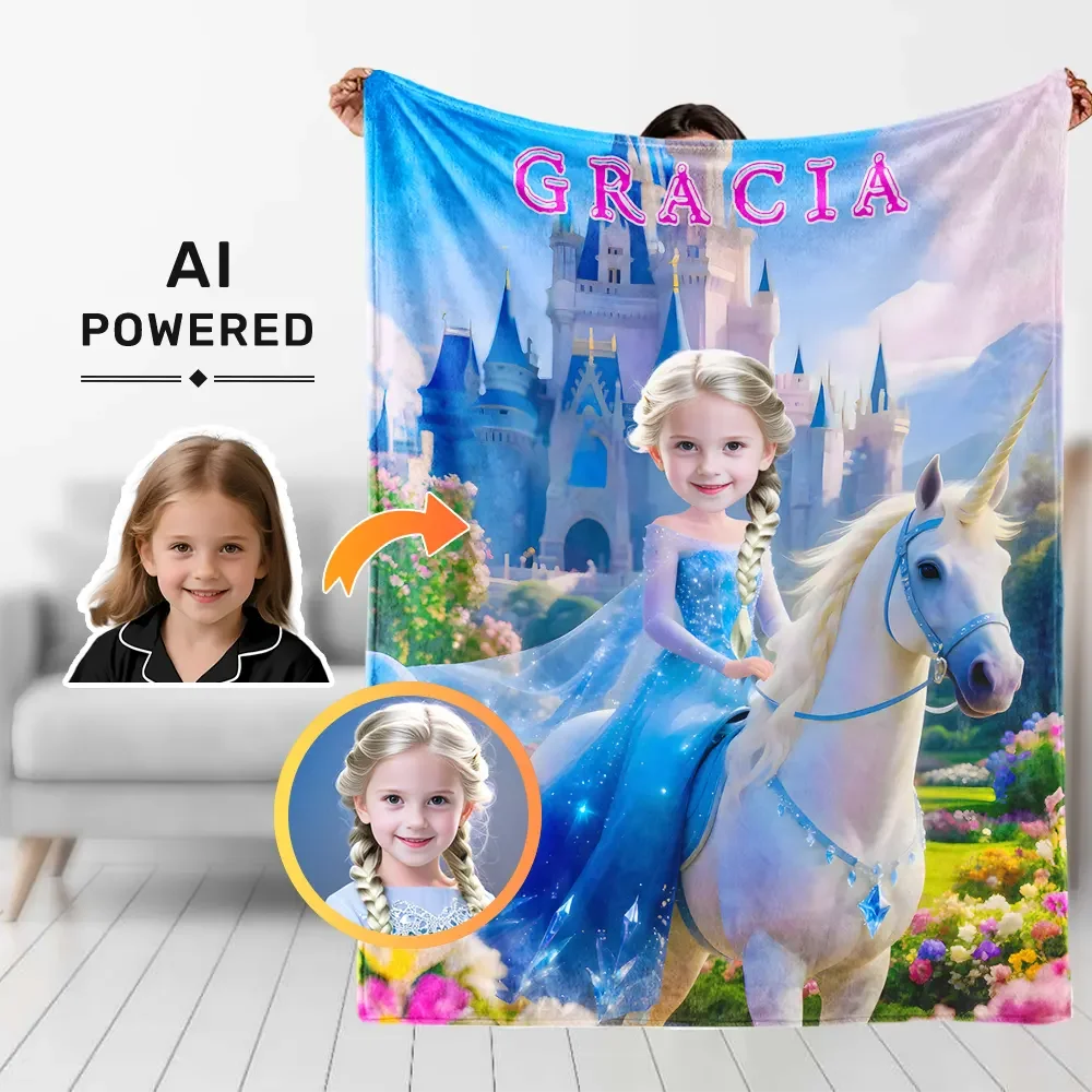 Custom Photo Blankets AI-Powered 3D Princess Personalized Ice Queen With Your Photo