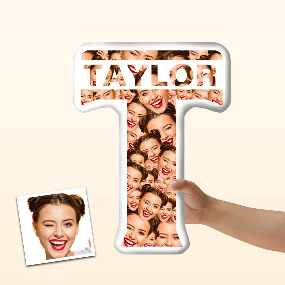 Custom Photo Face Pillow Funny Face Name Initials Letter T Face Pillow, Face Picture Pillow Doll Face Body Pillow Personalized Doll Doll Plush