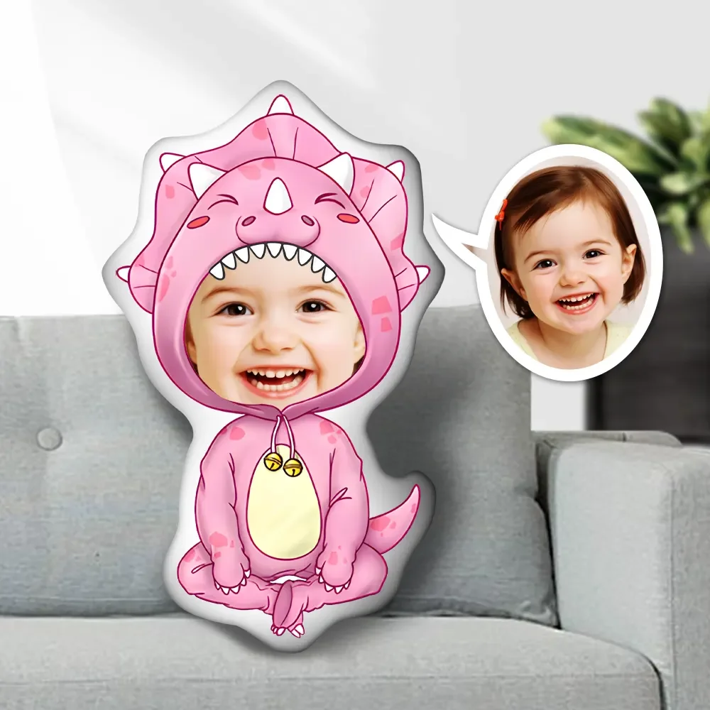 Custom Photo Face Pillow, Pink Dinosaur Baby Face Pillow, Face Picture Pillow Doll Face Body Pillow Personalized Doll Doll Plush