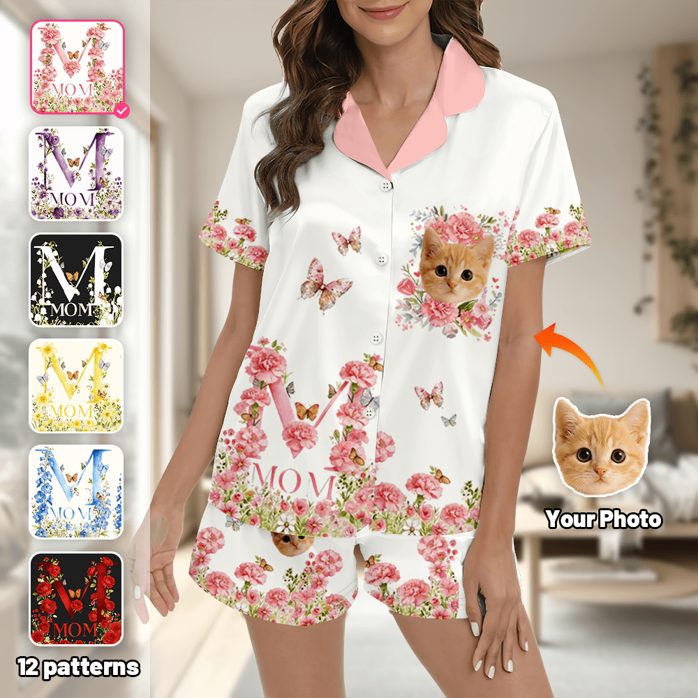 Custom Short Sleeve Pyjama With Your Face Floral Mom Pattern Romantic Mother's Day Gift For Mom