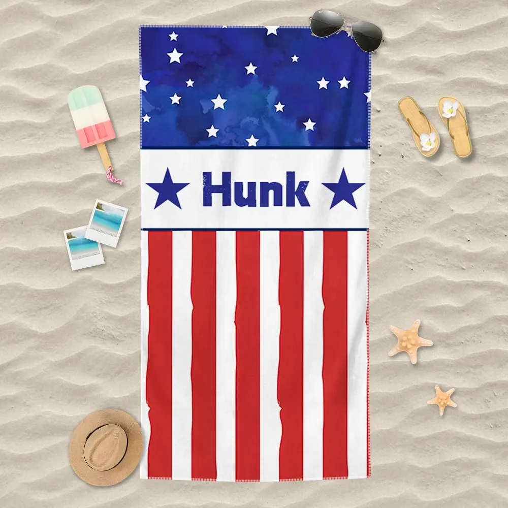 Custom Photo Beach Towel, Quick Dry Bath Towel ,American Flag Independence Day Swimming Towel